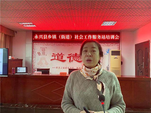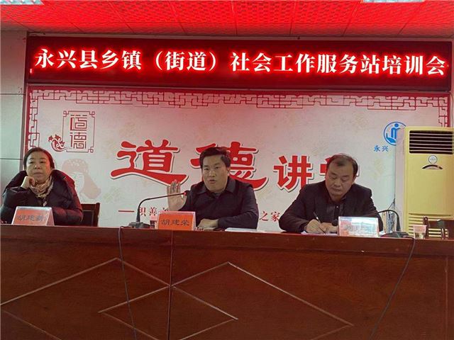 会上,永兴县民政局党委书记、局长胡建荣对所有参加今天培训,并且大力支持永兴县社会工作发展的各位专家教授,乡镇(街道)民政助理员、社会组织负责人表示衷心的感谢!同时,也向所有参训人员强调了为什么要建立乡镇(街道)社会工作服务站,以及社工在基层应该如何发挥作用,如何为老百姓带来真正的帮助等问题,清晰了社工小伙伴的奋斗道路与肩上担负的崇高使命!并期望大家一言一行都能弘扬主旋律,传播正能量,筑梦新时代。