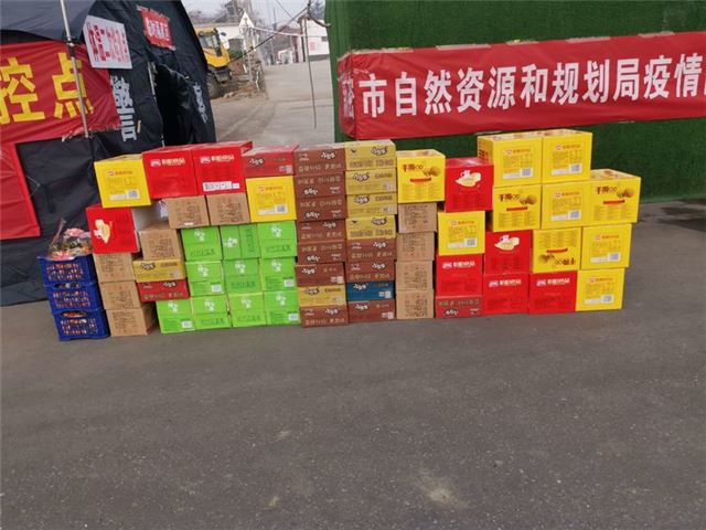 并为新密市自然资源和规划局对排査点带来防疫用品及生活用品。