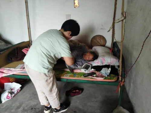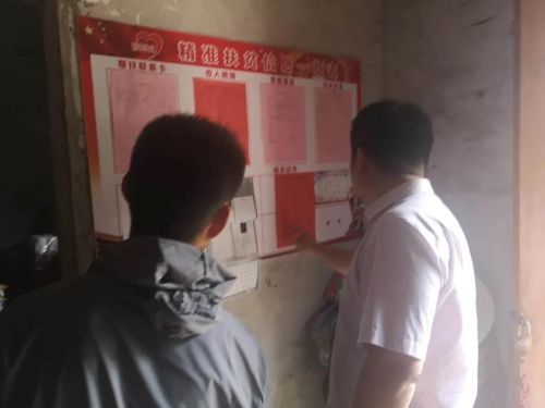 镇科级干部到贫困户家中检查扶贫档案完善和家居环境提升情况。