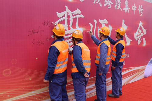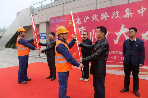 春光正好处,竞赛正当时。3月16日,在镇江市丹阳站施工现场,中铁电气化局运管公司上海维管处南京维管段誓师大会启动暨青年突击队授旗仪式上发出动员令,吹响了京沪线集中修的“冲锋号”。大会现场红旗招展,誓言铿锵有力、响彻云霄,号召广大青年员工积极投身安全生产,将“质”与“效”提起来,快马加鞭大干四十天,质效齐升实现“双胜利”,保障京沪铁路这条贯穿南北的铁路大动脉供电安全畅通。(杜希昊)