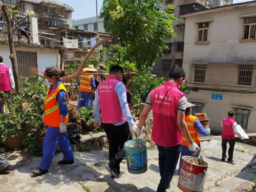 活动中,党员干部们把察民情访民意作为“我为群众办实事”的第一步,与周边居民了解民生微实事的落实、知晓情况,并和狮山街道、东风社区党员同志们进行交流,探讨如何解决居民的困难事、烦心事。针对新光里三街居民占用公共空间乱堆放杂物的问题,大家清庭院、拔杂草、搬石块、抬杂物,集中火力,一栋楼一栋楼推进,满腔热情,干劲满满。有的同志竟连身上多处被蚊虫叮咬都浑然不知,汗水湿透衣衫仍笑容溢满。