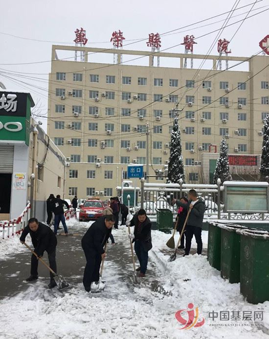 基层网讯 2018年1月4日,冰雪天气悄然而至,一场大雪把万荣县人民医院装扮得银装素裹,整个道路上铺满了厚厚的积雪,给患者和家人出行造成极大的不便。