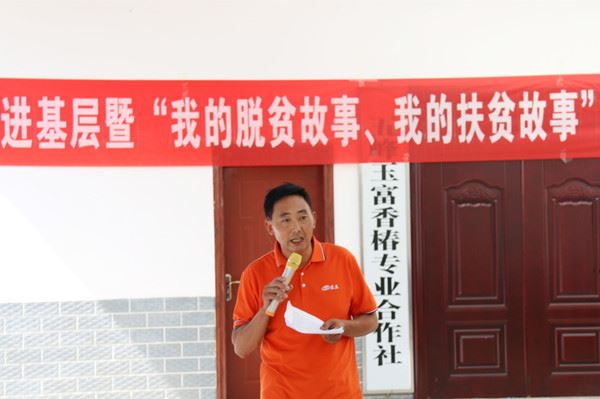 活动现场,贫困户王永柏用朴实的语言讲述了自己用勤劳的双手发展产业,带动周边群众脱贫致富的感人事迹。驻村第一书记汤恒炎向大家讲述了精准扶贫路上的所见所感。