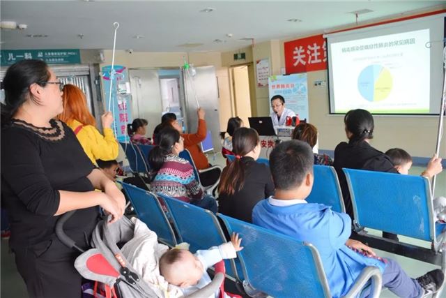 课堂上,儿一科医生围绕儿童社区获得性肺炎、病原学、临床特征、评估方法、治疗及疫苗预防等家长们了解相对薄弱的方面作了详细的介绍。