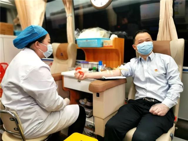 娄星区卫健局党组成员、医院院长贺军民献血