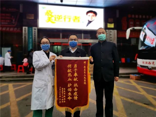 当日,医院累计献血量达15000毫升,娄底市中心血站为感谢医院全体职工对于献血工作的支持,特向医院送上一面锦旗,以“勇于奉献、抗击疫情、捐献热血、护佑生命”这16个字表达了对献血职工的感谢和敬重。