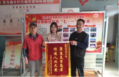 康复的市民家属向谯风华敬赠锦旗
