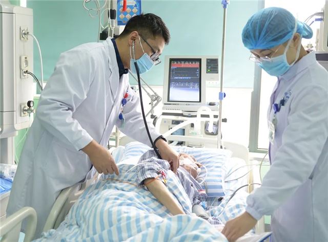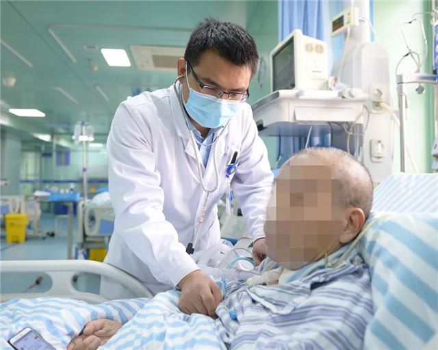 科副主任何远强在为重症患者检查