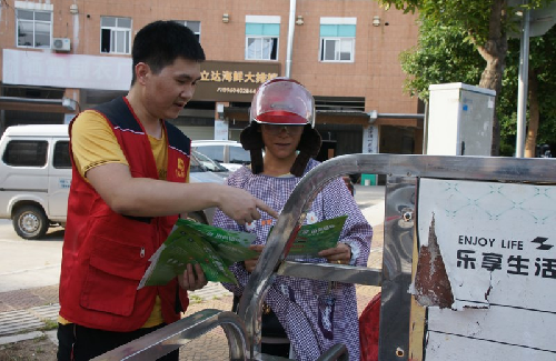 9月17日,在福建省泉州市泉港区栖霞小区,中国雷锋报泉港工作站的志愿者,走上街头开展“全民健康生活方式行动月”志愿宣传公益活动。