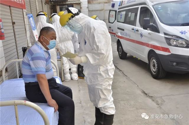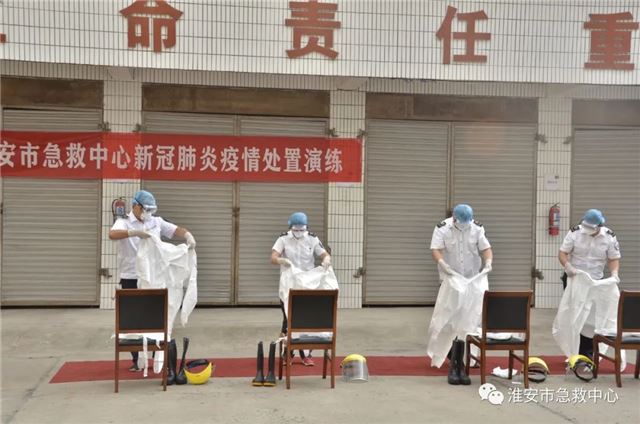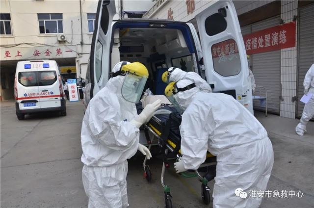 本次演练,模拟了中心接到市卫健委行政指令,称淮安某医院发热门诊有2例新冠肺炎阳性患者,其中1例为重症患者,现采取呼吸机无创通气等治疗措施,需两辆负压救护车将2名患者转定点医院集中隔离治疗。接到指令后,中心迅速启动,开展指挥协调、转运准备、转运实施、转运洗消等关键环节演练,全程细致地呈现了应对疫情的处置过程,展示了中心的应急组织能力、指挥调度能力、现场处置能力等。