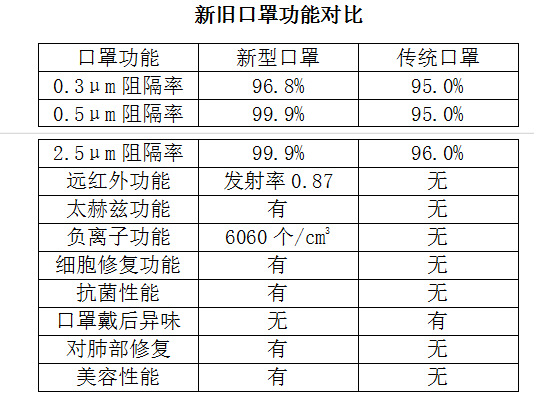 作为对新材料的开发与应用,上海嘉巷新材料科技有限公司紧紧抓住口罩的核心部分-熔喷布进行技术攻关。通过将复合材料纳米化,高度分散于塑料母粒中,不断调整与创新新的生产工艺,制备出来复合功能性的熔喷布。采用此熔喷布制造的口罩,经过专业的国家纺织机构进行检测,我们口罩的目标除了过滤效率,透气率外,增加了几个方面的特色:抗菌性,释放负离子,释放远红外及太赫兹波。赋予口罩一能多效的功能。负离子不仅抗菌,还具有增氧功能,有利于肺部修复。远红外和太赫兹波能具有促进面部细胞修复,口罩久戴不会闷,还具有美容功效。携带太赫兹波的负离子及空气流进入肺部,对肺部功能改善有很大的益处。由于功能性的提升,新型口罩表现出许多意想不到的功效。有牙疼戴后牙不疼的。有面部长疙瘩戴后消失的。口罩反复穿戴三天都不会产生臭味。由于负离子的作用,戴过我们口罩的朋友普遍反映我们的口罩透气感好,久戴不会感觉闷。甚至有肺部纤维化的朋友,使用我公司的功能布做内衣,致使肺部纤维化发生逆转。这对患过新冠肺炎的病人康复极佳的新发现,这项研究正在深入进行中。