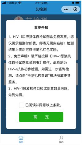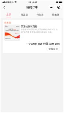 5、完成申领登记,即可免费获取HIV-1尿液抗体自检试剂盒(仅需承担到付邮费);