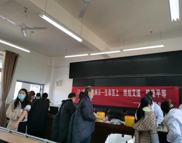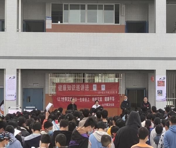 太平镇卫生院医务人员在太平镇中学对青少年开展“世界艾滋病日”宣传。太平镇卫生院医务人员对太平镇学校教师开展“世界艾滋病日”宣传,及为所有教师提供咨询检测服务。