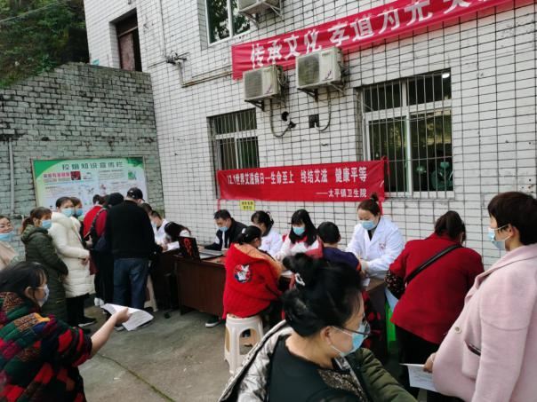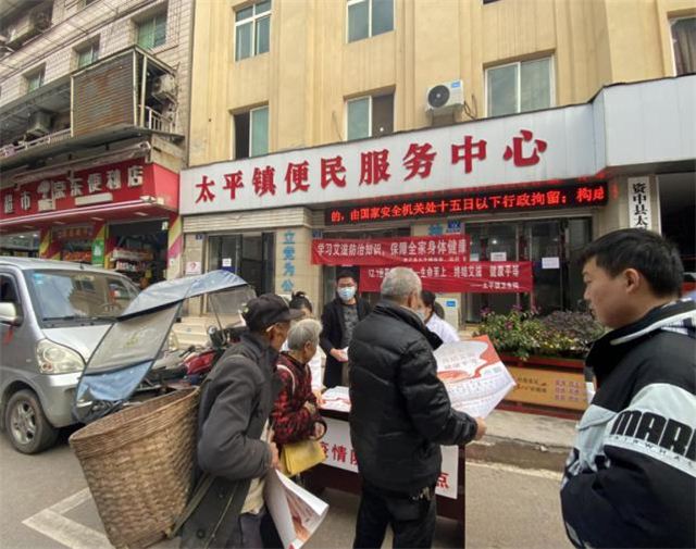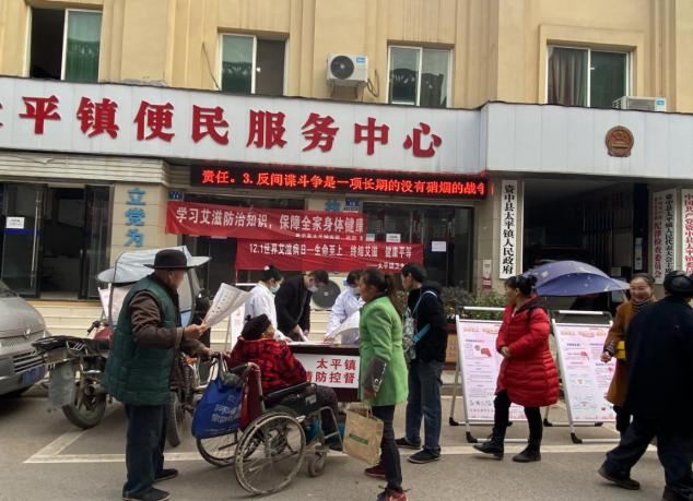 太平镇卫生院医务人员及政府相关人员在太平镇场镇开展“世界艾滋病日”宣传。