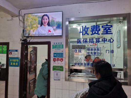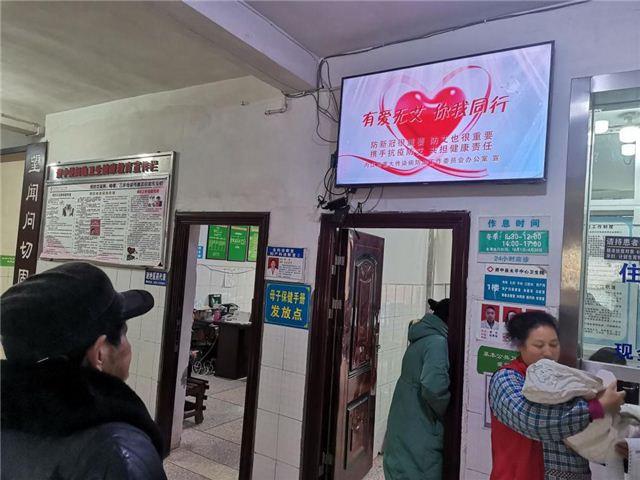 太平镇卫生院电视播放“世界艾滋病日”宣传视频图片。