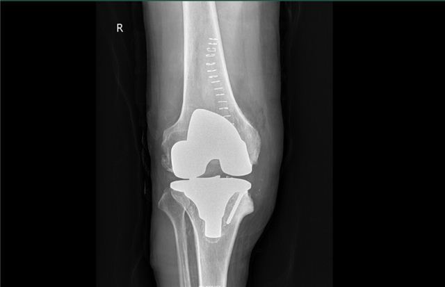 由于患者右膝关节内侧平台塌陷比较多,如果选择常规截骨骺,内侧平台仍然有较大的缺损,膝关节置换是唯一的治疗方法。庆幸的是,“在家”时,我曾跟着我的师傅蔡炜处理过类似的病人,所以在面对这类病人的时候,现在我可以更优地为患者制定手术方案,也可以更从容、有把握地为患者做好手术。
