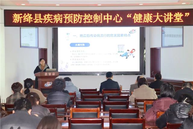 此次“健康大讲堂”活动定于每周开展一次,由疾控中心的行业专家、业务骨干、青年干部对疾病预防工作进行知识分享和经验交流。在开展的第一期课堂中,疾控中心副主任医师郭亚丽就“地震灾后防疫”为大家献上了精彩的开年第一课。