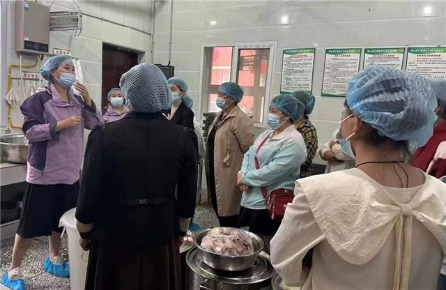 活动开始,主管食堂的副园长李思雨向家长们介绍了幼儿园的基本情况、教育理念及幼儿园膳食等内容,使家长进一步了解幼儿园的整体情况。随后,膳食委员会的成员们戴好口罩、做好防护走进厨房,查看了食品经营许可证、从业人员健康证、日常监督检查结果记录表及各类台账,并现场参观了各操作间、食品仓库。食堂干净整洁的环境和标准规范的管理获得了家长们的一致好评。