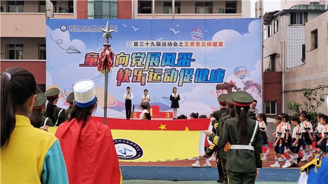 运动员们像朵朵花儿,在老师的带领下,高举着醒目、耀眼的班牌、班旗,喊着整齐响亮的口号,拿着精心准备的啦啦队道具,生机盎然,意气风发地走过主席台,充分体现了独一无二的班级文化特色。