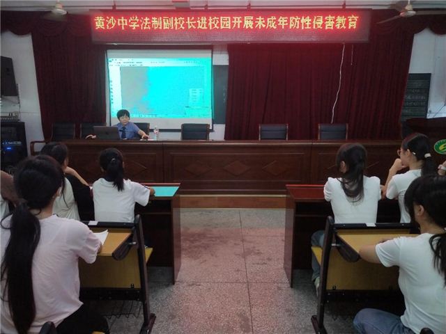 为进一步增强学生的自我保护意识,提高学生预防性侵的能力,构建平安和谐校园,9月26日下午2:50,学校法制副校长易光英莅临黄沙中学,为初二初三女学生开展了一场生动而深刻的预防性侵教育活动。