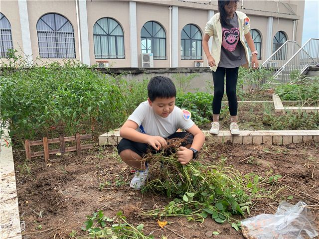 劳动基地,成了孩子们的乐园。锄地的孩子,深一锄头浅一锄头地用力挖着;除草的孩子,从地里掏出了几颗花生,像获得巨大收获一般,兴奋得合不拢嘴;清理杂草的孩子,干得多么的认真负责,一看就是一把好手。