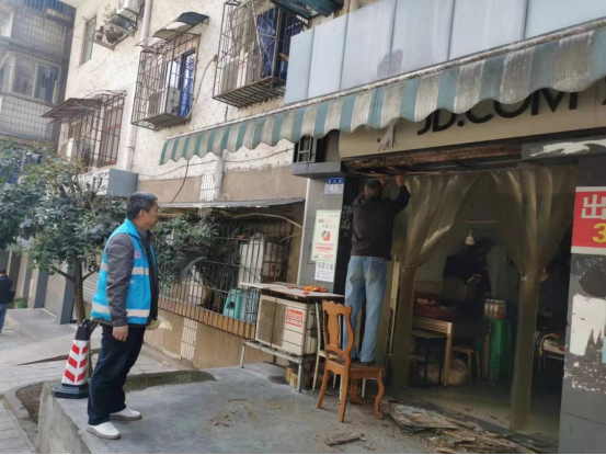 10月18日,内江市市中区玉溪街道新华路社区针对社区内破损广告牌展开了全面排查和拆除工作。