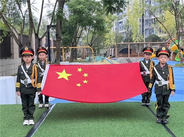 伴随着激昂的进行曲,护旗手们迈着整齐的步伐,昂首挺胸走向升旗台。在庄严的国歌声中,五星红旗缓缓升起,全体师幼面向国旗行注目礼,共同见证这一庄严时刻。随后,结合“诚信”“立冬”主题,孩子们以多种形式呈现了精彩的国旗下表演。大班组小朋友带来了手势舞《诚信美德传天下》声情并茂地展示了诚信品格的重要性。中班小朋友们通过活力四射的舞蹈《诚信歌》,展现了“言必行,行必果”的诚信美德;舞蹈《立冬来》生动描绘了立冬节气的到来,表达了对冬天的期待与喜悦。