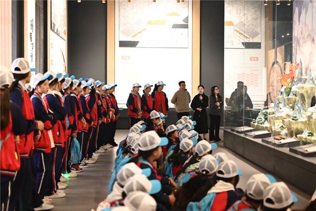 市博物院承载着宜宾市的悠久历史,从史前文明到近代生活,市博物院用自己的方式向世人诉说着这一代代的故事与传奇。书法馆里文物用笔墨流淌千年文脉;民俗馆里,老物件静默讲述着地方风土人情;酒文化馆里,醇厚的酒香与悠久的历史使人沉醉。参观学习《我住长江头》主题馆时,学生们仿佛穿越时空,近距离触摸到了巴蜀文明的脉搏,深刻感受到了川南历史文化名城的独特魅力与深厚积淀。自由参观《四季乡愁》时,宜宾人民多姿多彩的日常生活与文化风情仿佛就在昨日,穿越四季带领他们体会宜宾的独特魅力。在博物馆,他们或驻足凝视,或轻声讨论,不时向随行老师提出自己的见解与疑问,在探究中成长与进步。