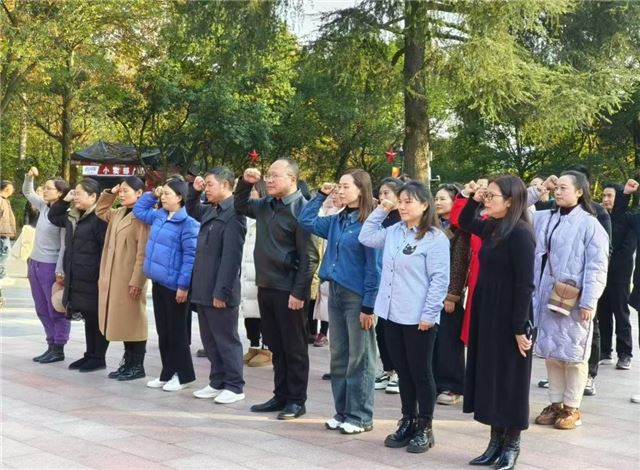 在庄严肃穆的红军山烈士陵园,学员们拾级而上,在烈士纪念碑下进行了庄严的缅怀仪式。全体学员肃立默哀,学校党支部书记、校长刘小兰整理花篮绶带。全体党员面向纪念碑重温入党誓词,并三鞠躬致敬,以表达对革命先烈的无限敬仰之情。讲解员声情并茂,将那段战火纷飞的岁月娓娓道来,红军战士们勇往直前、百折不挠的英雄气概如烈烈雄风,吹彻众人心灵深处,令人热血沸腾、豪情满怀。