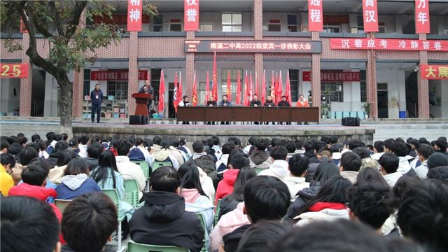 12月6日,南溪第二中高三年级全体师生齐聚一堂,举行“宜宾一诊考试”表彰大会。此次大会由副校长李勇主持,旨在表彰在考试中取得优异成绩的学子,激励全体高三学生以更加饱满的热情和坚定的信念迎接即将到来的高考挑战。