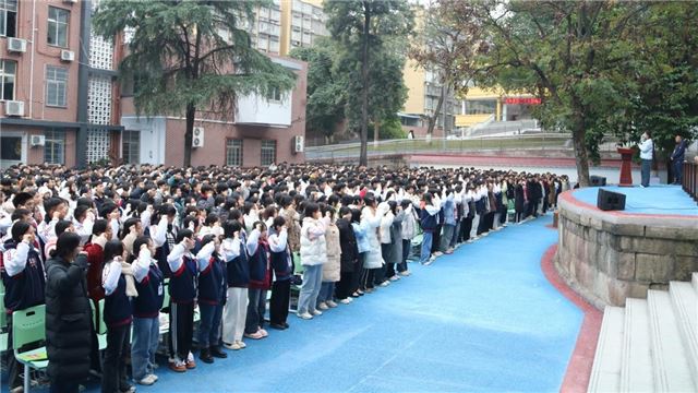 大会在庄严的国歌声中拉开序幕,全体师生肃立,齐唱国歌,展现出全校师生积极向上的精神风貌。随后,副校长李勇简要回顾了本次宜宾一诊考试的总体情况,对同学们在考试中展现出的拼搏精神和优异成绩给予了高度评价。