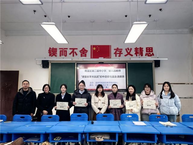 12月9日,南溪三中承办了宜宾市第二届中小学、幼儿园教师“课堂教学大比武”南溪区初中道德与法治选拔赛。来自南溪区多所初中的优秀道德与法治教师齐聚一堂,展开了一场精彩纷呈的教学技艺较量。