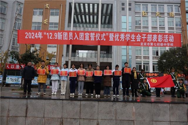 12月9日上午,宜宾七中成功举办了2024年秋期新团员入团宣誓仪式,仪式以“挺膺担当砺青春,奋楫笃行向未来”为主题。本次活动旨在引导全校团员青年积极融入新常态,弘扬社会正能量,传播青年好声音,并自觉践行社会主义核心价值观,展现新团员的忠诚、担当、务实、奋进精神。