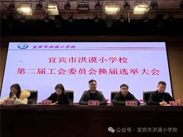11月24日下午,宜宾市洪谟小学校在洪谟报告厅召开第二届工会委员会换届选举大会。学校党总支书记黄春,党总支副书记、校长熊继华,上届工会主席韩家春,党总支委员、副校长罗义萍、李强与全体工会会员齐聚一堂,共同参与本次民主选举,顺利进行工会换届工作。