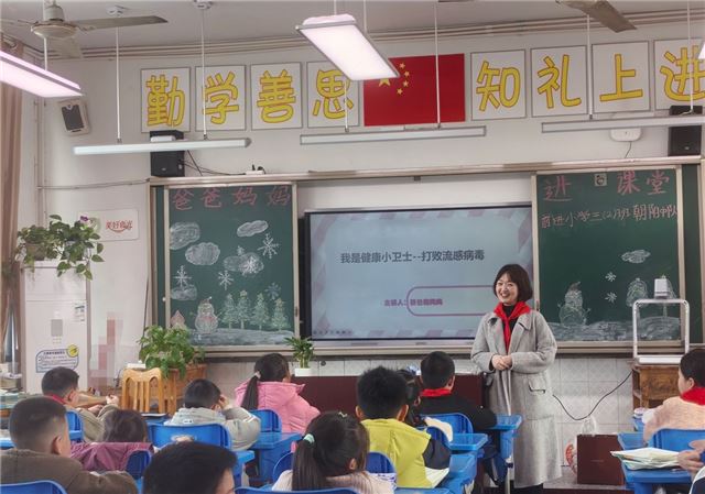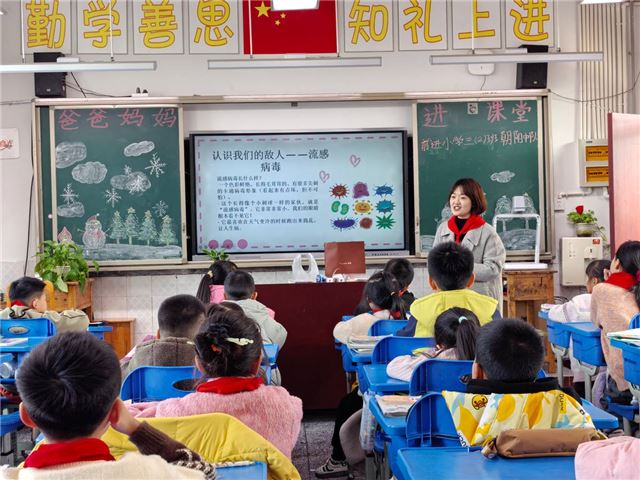 秋冬流感高发季,为筑牢班级健康防线,提升孩子们的防护能力,11 月 28 日下午,前进小学三(2)班姜云嫣妈妈为孩子们带来了一节趣味十足的“我是健康小卫士——打败流感病毒”主题班会课。