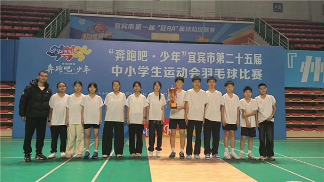近日,宜宾市第二十五届中小学生运动会羽毛球赛事圆满落幕,仙源初中羽毛球队在此次赛事中表现亮眼,斩获总分第三的优异成绩,为学校赢得了荣誉。