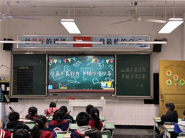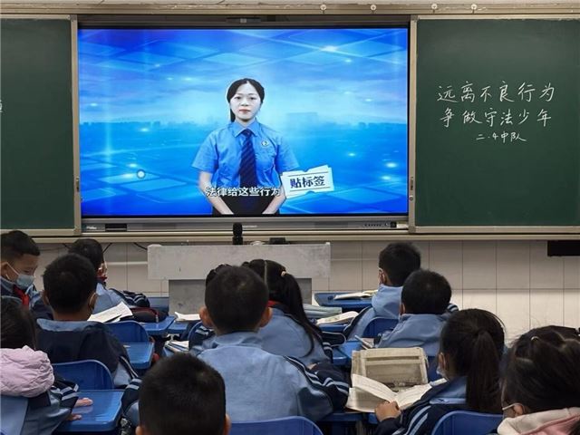 班队活动中,有的班级通过观看法治动画、听老师讲解“不良行为的危害”等内容,用生动形象的方式帮助学生认识校园欺凌、逃学旷课等不良行为的后果;有的班级则开展“法治案例大讨论”等活动,在交流探讨中深化对法律条文的理解;有的班级结合生活中的真实案例,向学生讲解《预防未成年人犯罪法》对未成年人的保护与约束,引导学生学会用法律武器维护自身合法权益。活动现场氛围热烈,学生们积极参与、踊跃发言,在轻松愉快的氛围中接受了一次深刻的法治教育。