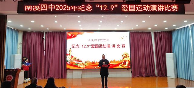 为传承“12.9”运动爱国精神,抒发青年理想担当,12月8日下午,南溪四中“青春颂华章,奋进承薪火”演讲比赛决赛在综合楼六楼演播厅精彩上演。18名从各年级初赛中脱颖而出的选手同台竞技,以赤诚之心诉家国情怀,用青春之声传时代担当,为现场师生呈现了一场浸润心灵的视听盛宴。