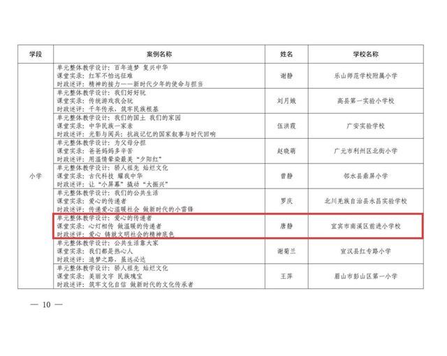 近日,宜宾市南溪区前进小学教师唐静思政教学案例成功入选四川省教育厅优秀案例名单。