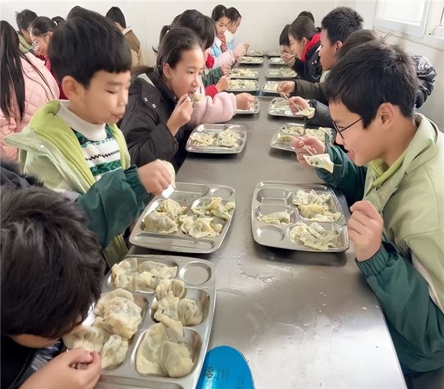 当热气腾腾的饺子端上桌,浓郁的香气瞬间弥漫整个校园。孩子们围坐在一起,品尝着自己亲手包的饺子,眉眼间满是满足与自豪。“自己包的饺子最香啦!”“这个元宝饺一定能带来好运!”稚嫩的话语里,是劳动的喜悦,更是集体生活的温暖。一碗碗热饺子下肚,暖的是胃,更是心,也让孩子们在分享中懂得了合作的意义,在实践中体会了劳动的价值 。