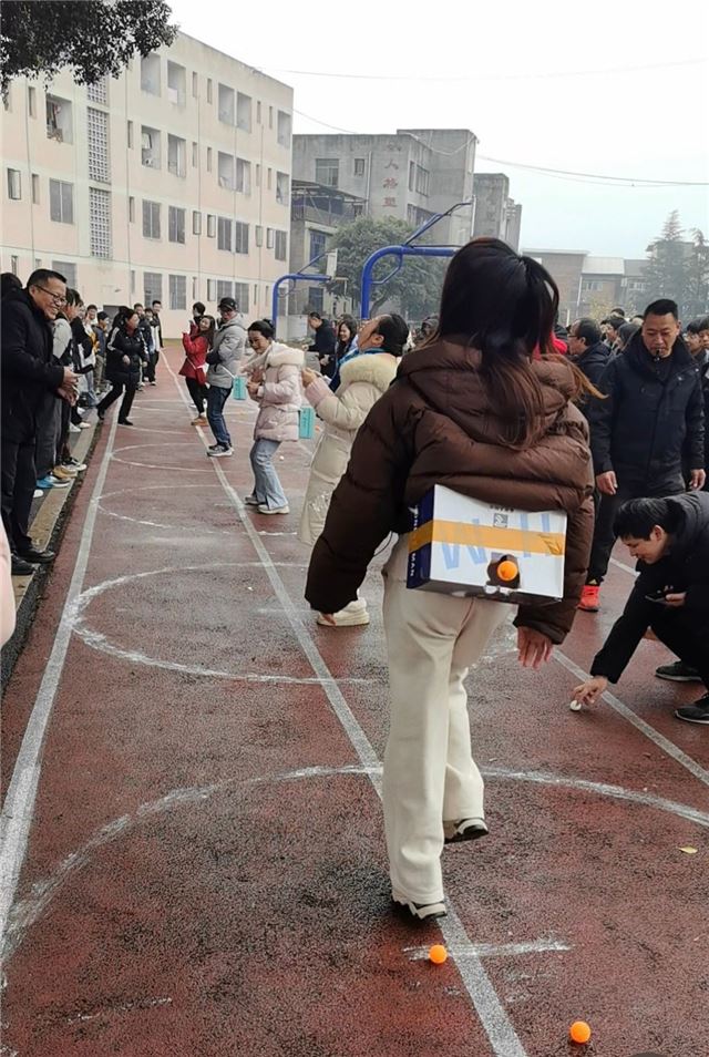 为庆祝2026年元旦,丰富教职工节日文化生活,增强团队凝聚力,12月31日,南溪三中在操场开展了元旦教职工趣味文体活动,全体工会会员以教研组为单位组队参赛。