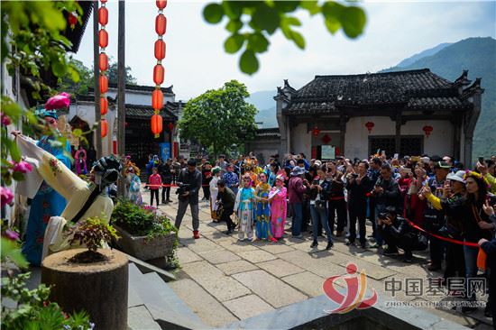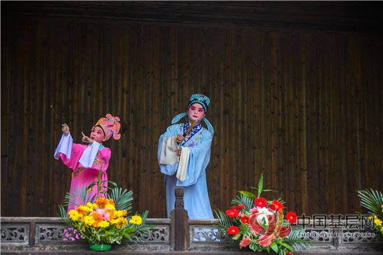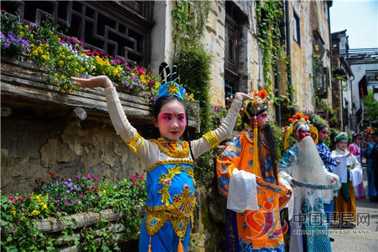 中国基层网婺源4月17日消息(通讯员 方华彬)4月15日,来自南京、南昌等多地戏曲爱好者齐聚婺源篁岭鲜花小镇,在徽派古戏台上,一群可爱的小戏骨和戏曲前辈们同台飚戏,一场戏曲的文化盛宴在篁岭隆情上演。