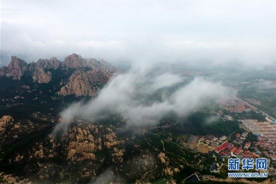 山东青岛崂山风景区5月19日至20日出现云海景观,雾气缭绕,笼罩山峰,与远处的大海交相呼应,景色迷人。