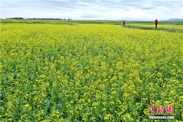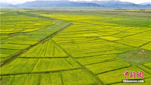 原标题:祁连山下油菜花海勾勒田园之美