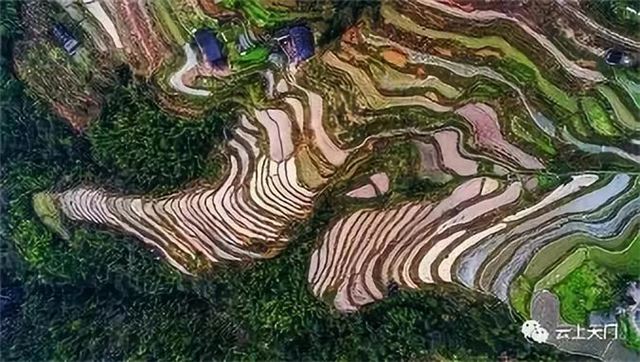 梯田:层层梯田高山绕,稻花香里九龙潭。