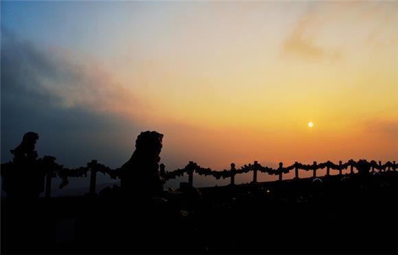 太阳缓缓升起,古剑山阳桥处的两尊狮子正在守候清晨的第一缕阳光。通讯员 孙治波 摄