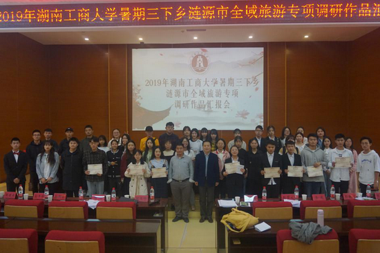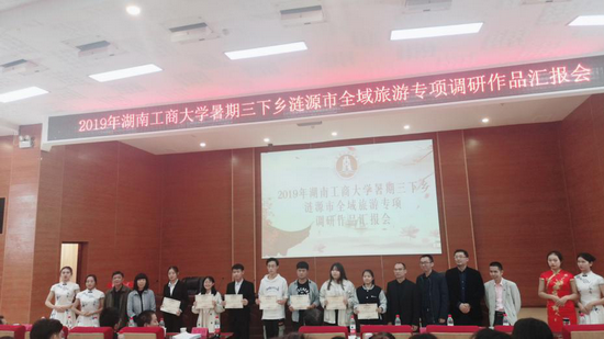 为了加强产学研协同创新,发挥湖南工商大学的培养人才、科学研究、传承文明、服务地方的功能,助推涟源市科技扶贫与乡村振兴,涟源市科技扶贫专家服务团联合涟源市文旅广体局、科技与工业信息化局、湖南工商大学团委、旅游管理学院组织2019年大学生暑期三下乡涟源全域旅游专项调研活动。在今年7月至8月,来自湖南工商大学各学院的18支调研队伍156名学生在指导老师带领下,冒着酷暑,先后前往涟源市桥头河、荷塘、杨市、三甲、石马山、蓝田、古塘、伏口、龙塘、六亩塘、茅塘、斗笠山等乡镇,针对湘军老建筑、龙山医药养生、湄江国家地质公园、开国上将李聚奎故居、国家非遗珠梅抬阁、省级非遗枫坪傩狮舞、国家地理标志产品枫木贡茶、富田桥豆腐等特色资源开展深入调研,并撰写系列旅游文创作品。涟源市电视台、涟源在线等媒体跟踪报道,新湖南、今日头条等媒体纷纷报道,在伏口调研的“金樱小分队”荣获中国青年网“镜头下的三下乡”优秀视频奖,产生良好的社会影响。