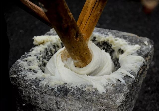 在我们的记忆里,打糍粑那种浓浓的人情味和年俗混在一起,就特别让人回味,随着时代的变迁,这种气氛也就少了很多。打糍粑是黄岩人迎春的传统风俗,黄岩一直延续着这种传统,也成了怀化大峡谷一项特别的体验项目,热乎乎新出的糍粑是儿时难忘的美味。