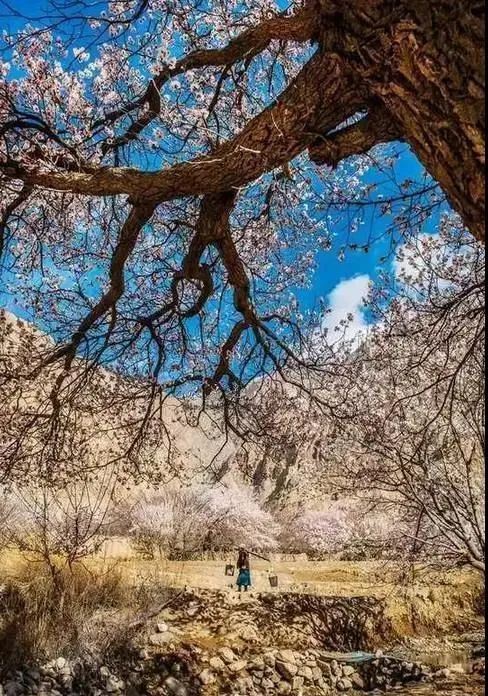 每年的三四月份,塔什库尔干塔吉克自治县的杏花村春意盎然,一朵朵杏花盛开在山野间,犹如一幅幅美丽的画卷。张成学 摄