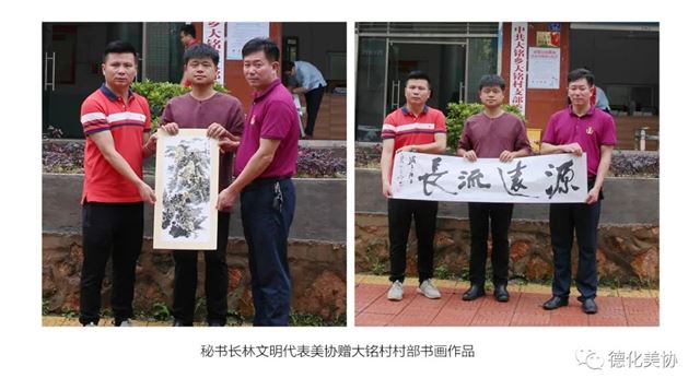 县美术家协会6位美术家向大铭村委会赠送了8件美术、瓷雕、书法作品,体现了艺术从群众中来,到群众中去的精神实质。